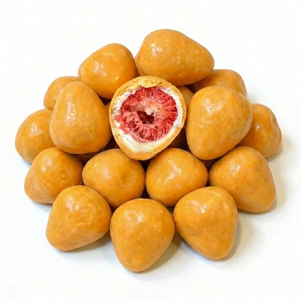 Авторский десерт, где сублимированная клубника облачена в нежный белый шоколад и утончённую глазурь из маракуйи. Деликатная обработка бережно хранит интенсивный ягодный профиль, а тонкое покрытие раскрывает многогранность вкуса: кремовая сладость шоколада плавно перетекает в освежающую тропическую кислинку. Каждый кусочек дарит игру текстур - тающая воздушная середина под нежной хрустящей оболочкой