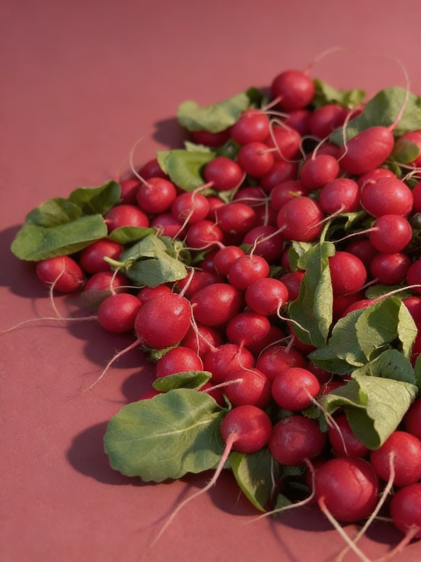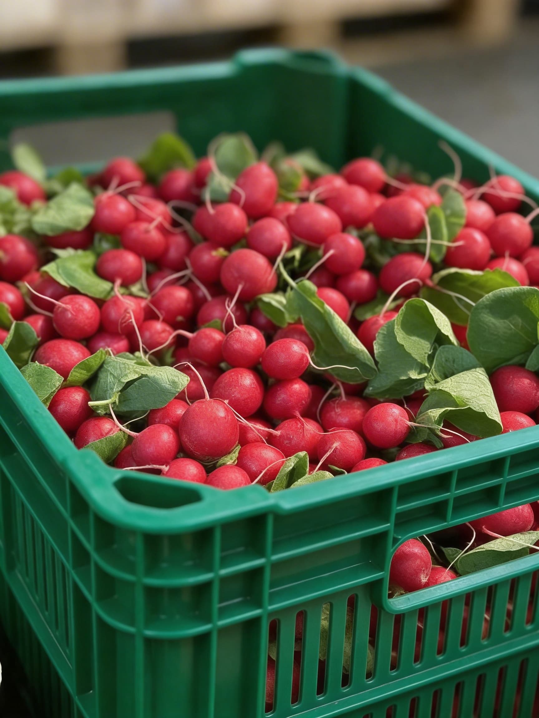 Свежая редиска имеет упругую структуру, насыщенный розово-красный цвет и характерный островато-пряный вкус, который придаёт блюдам пикантность. Молодая ботва тоже съедобна и содержит много витаминов — её можно добавлять в супы или салаты. Такая редиска станет украшением весенних и летних блюд, привнося в них свежесть и лёгкую остроту.